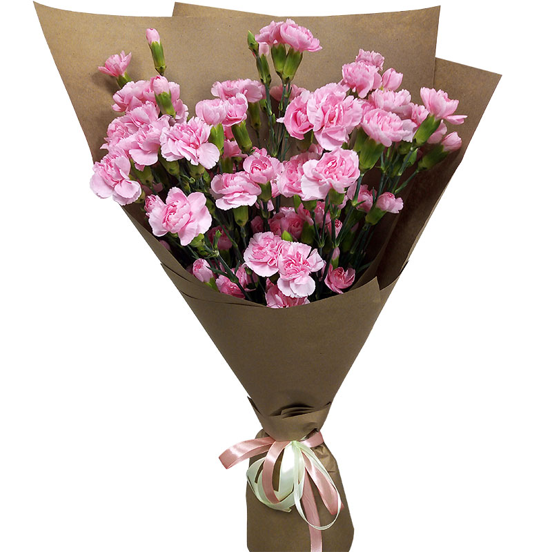 Состав: гвоздики Шабо 17 (55-60 см.), оформление крафт, лента.
