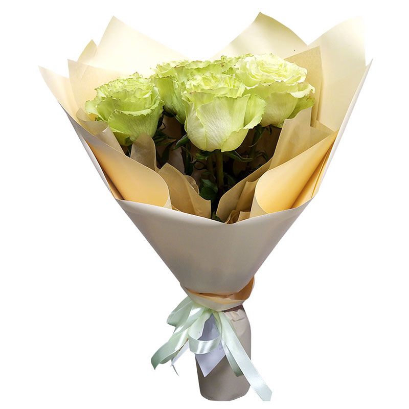 Состав: 7 роз (50 см.), оформление калька, лента.