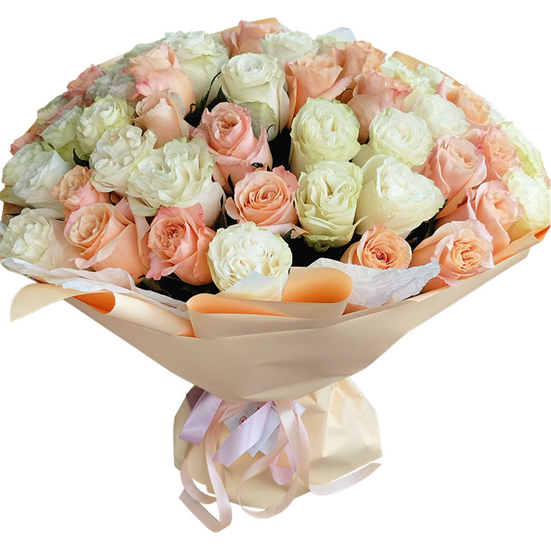 Состав: роза 55 шт. (50 см.), оформление тишью, калька, лента.