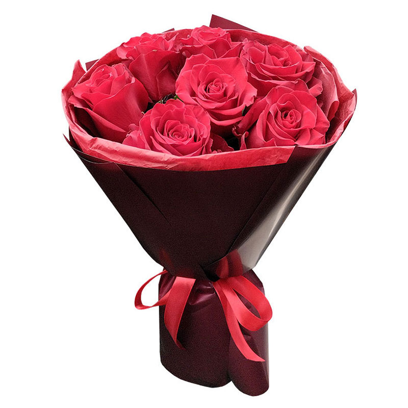 Состав: 7 роз 60 см., оформление калька, фетр, лента.